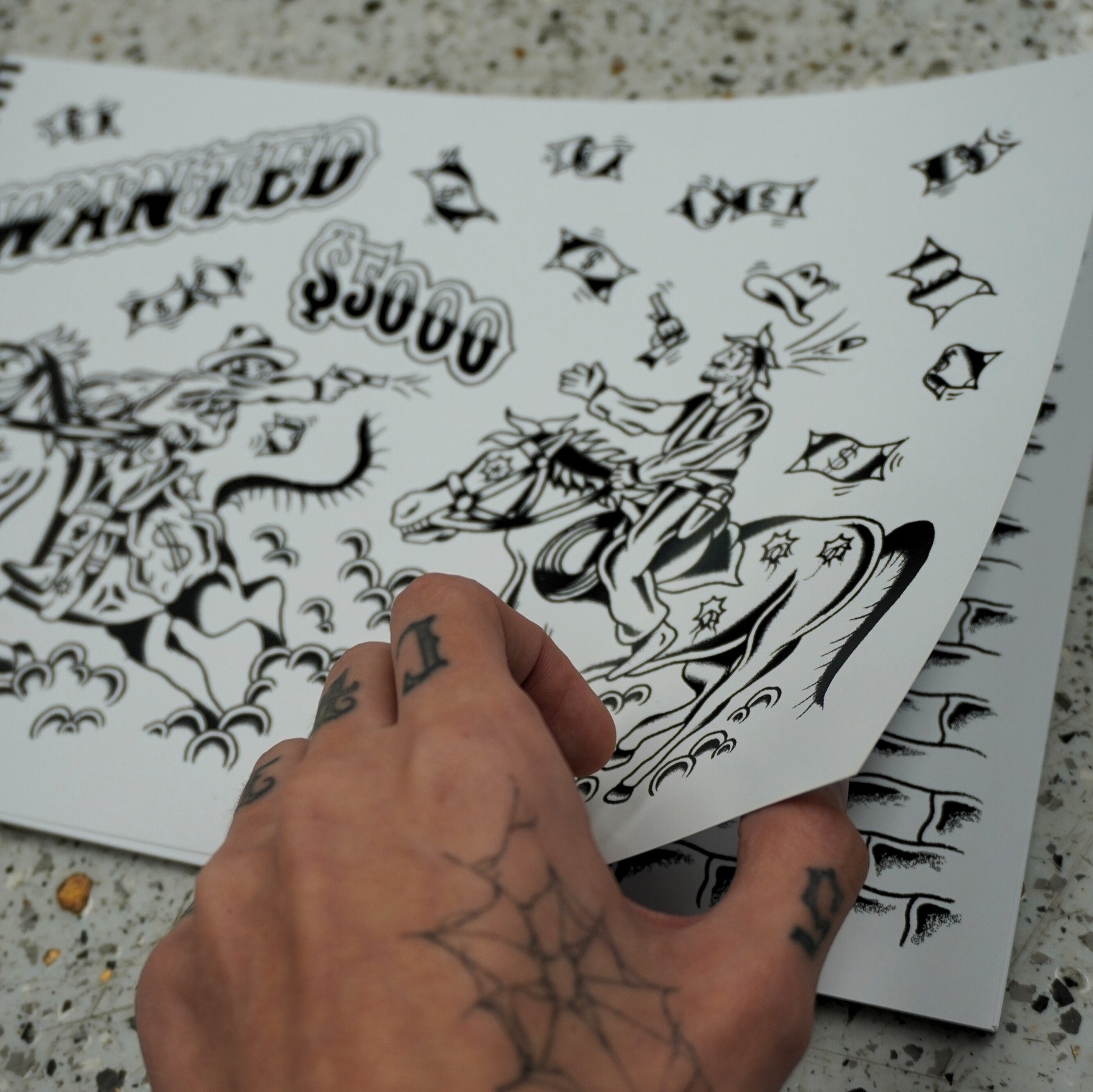 This is a flash book full of timeless traditional tattoos, all ready to be made on skin.