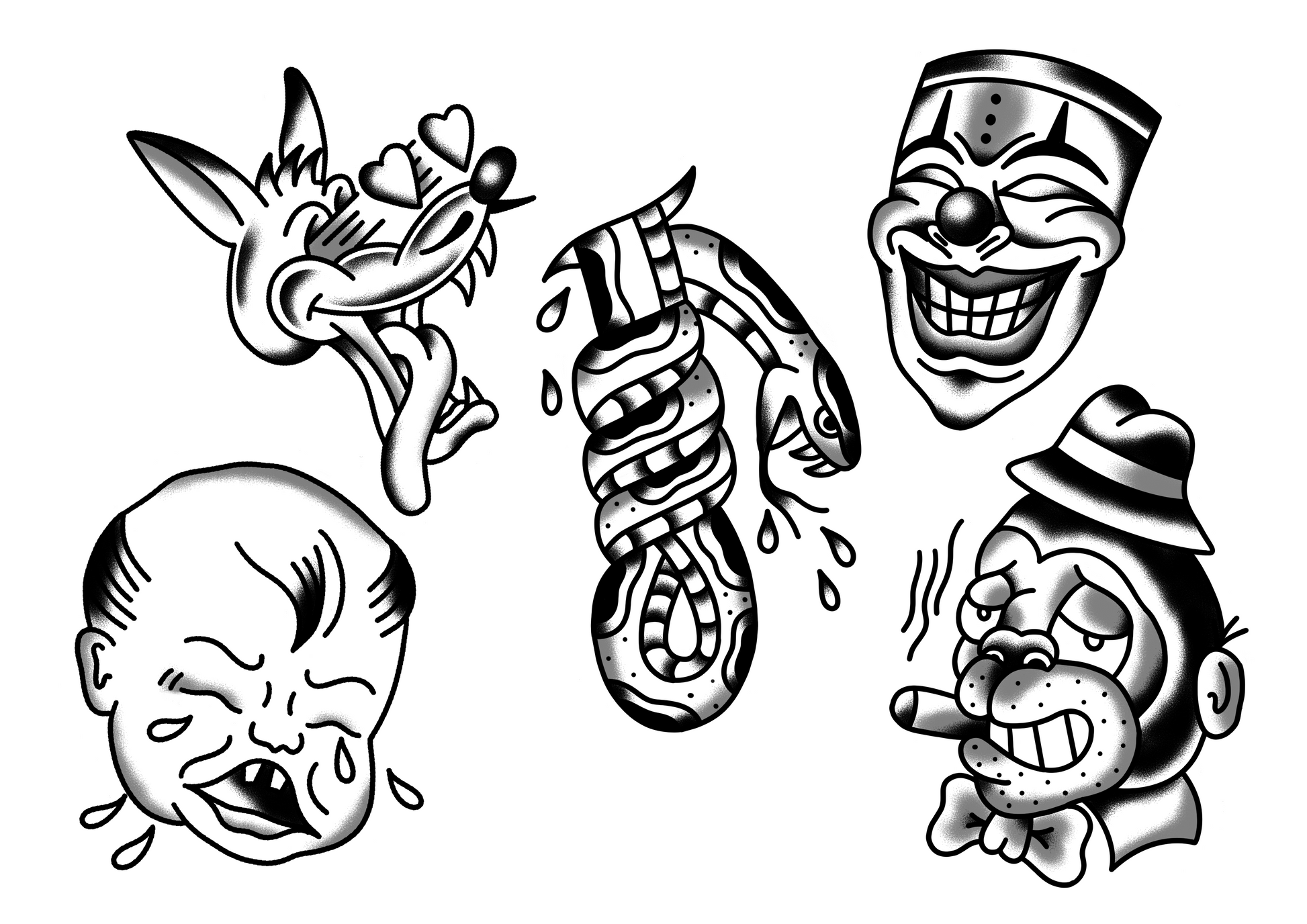 This is a flash book full of timeless traditional tattoos, all ready to be made on skin.